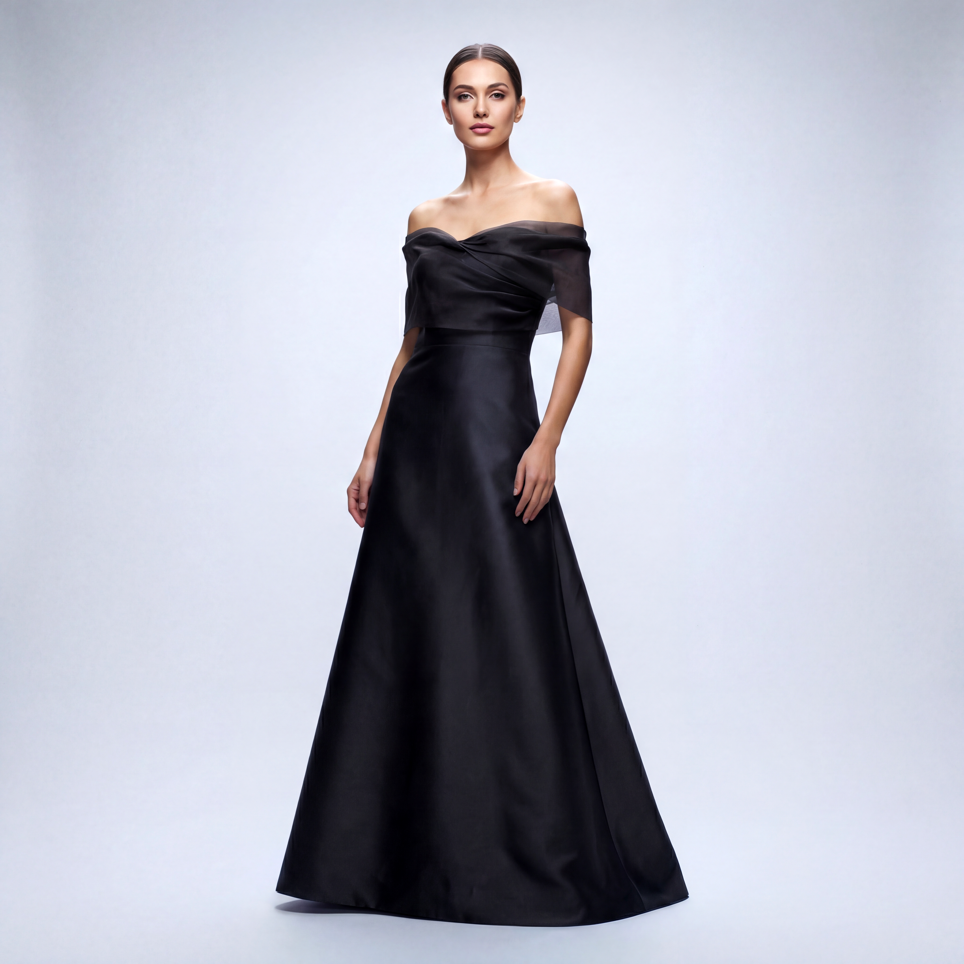 The Vivienne Off-Shoulder Gown with Silk Organza Drape