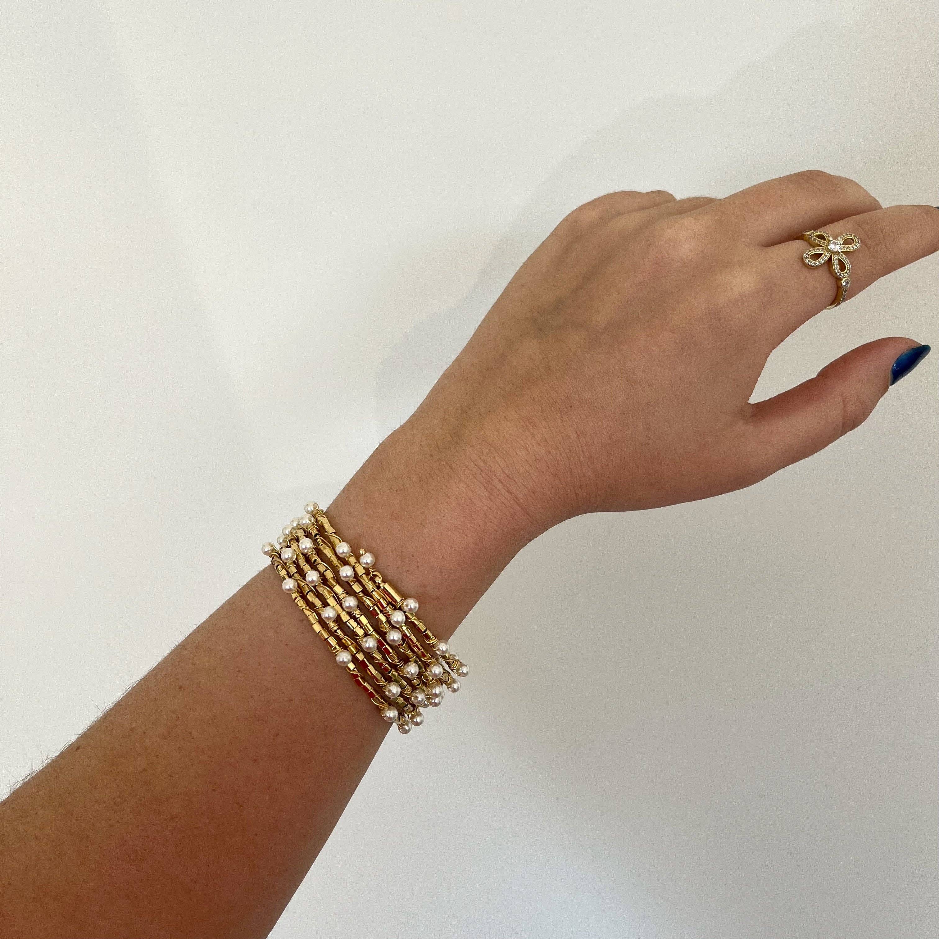 You'll be looking super chic with this Blake Pearl Wrap Bracelet! 6 rows of pearls, so you can flaunt your style and look dignified at the same time! Perfect for that elegant and classy vibe. Be the envy of your friends! * Brazilian Gold Filled * Adjustable size * Water & tarnish resistant