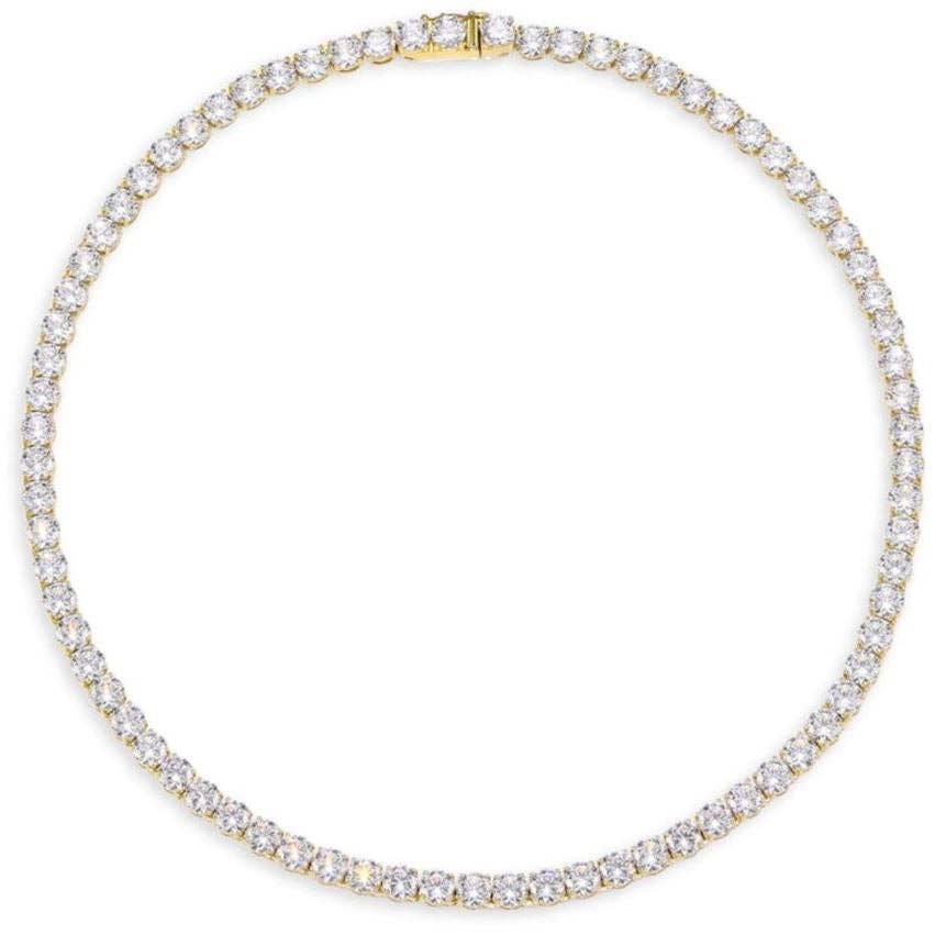 Elevate your style with our stunning Karla Tennis Necklace. This timeless piece features a continuous line of sparkling stones that catch the light with every movement. Perfect for special occasions or adding glamour to everyday outfits, this versatile necklace sits beautifully against the neckline and pairs effortlessly with any ensemble. Make a statement that speaks of elegance and sophistication. 18K Gold Plated over brass Water & Tarnish Resistant 3mm cz stones