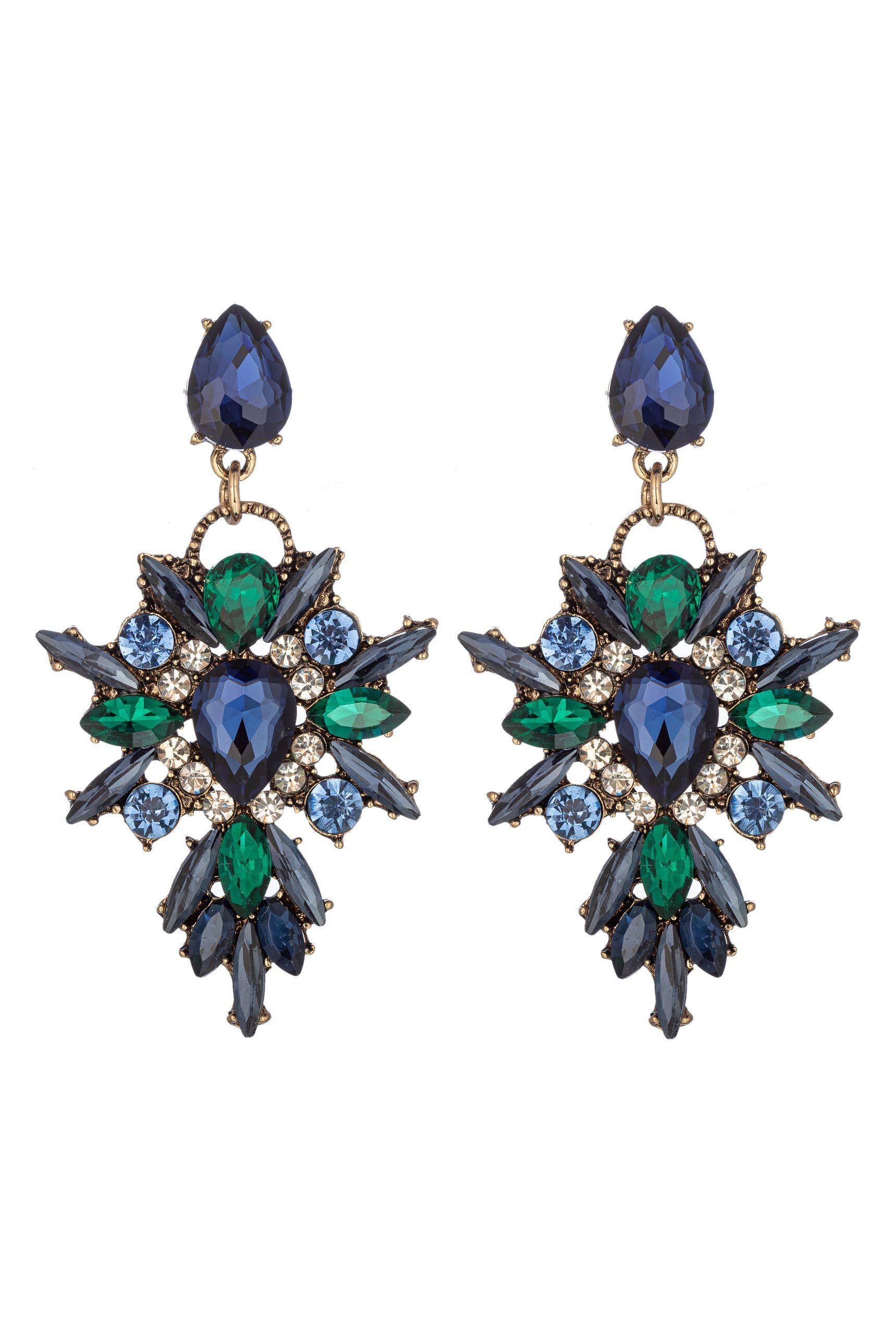 A cute pair of statement earrings never fails to impress the crowd on a night out on the town! These drop earrings are no exception to that. The way the blue and green tones of these glass crystals coincide together within a uniquely designed pendant earring makes the look of them stand out from any other like it!