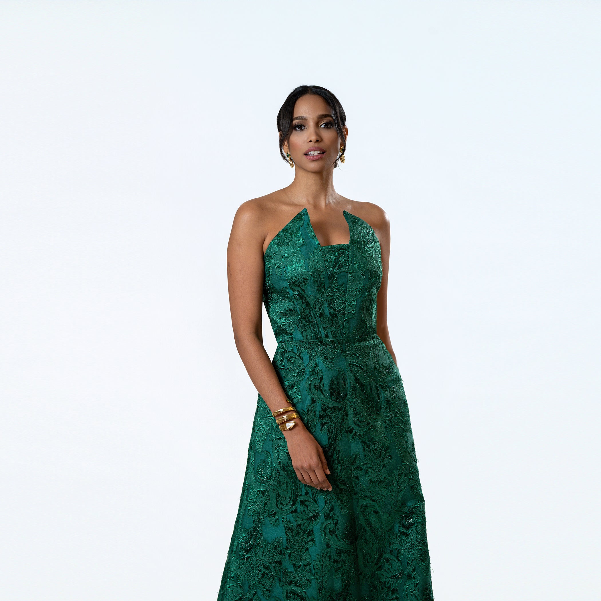 Crafted in NYC with options for customization, this dress is ideal for standing out with grace at any formal event.