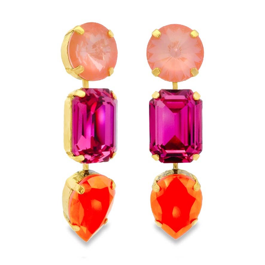 Add a sparkle to your day with the River Earrings! Crafted from antique gold-plated brass and topped with high-quality crystals, these earrings bring a touch of glam without the fuss. Hypoallergenic posts keep your ears happy, while the 2" length adds just the right amount of playful shine to any outfit. Perfect for those who love a little sparkle with a side of comfort!