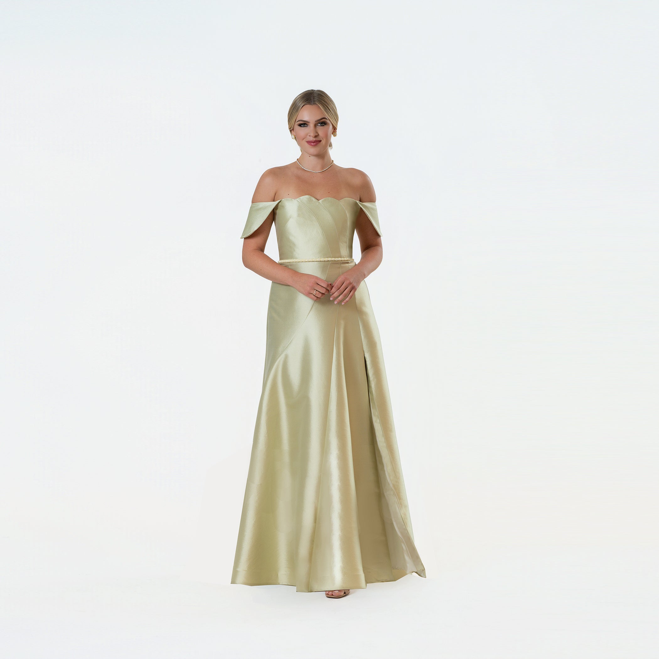Signature Off-the-Shoulder Scalloped Neckline A-line Gown